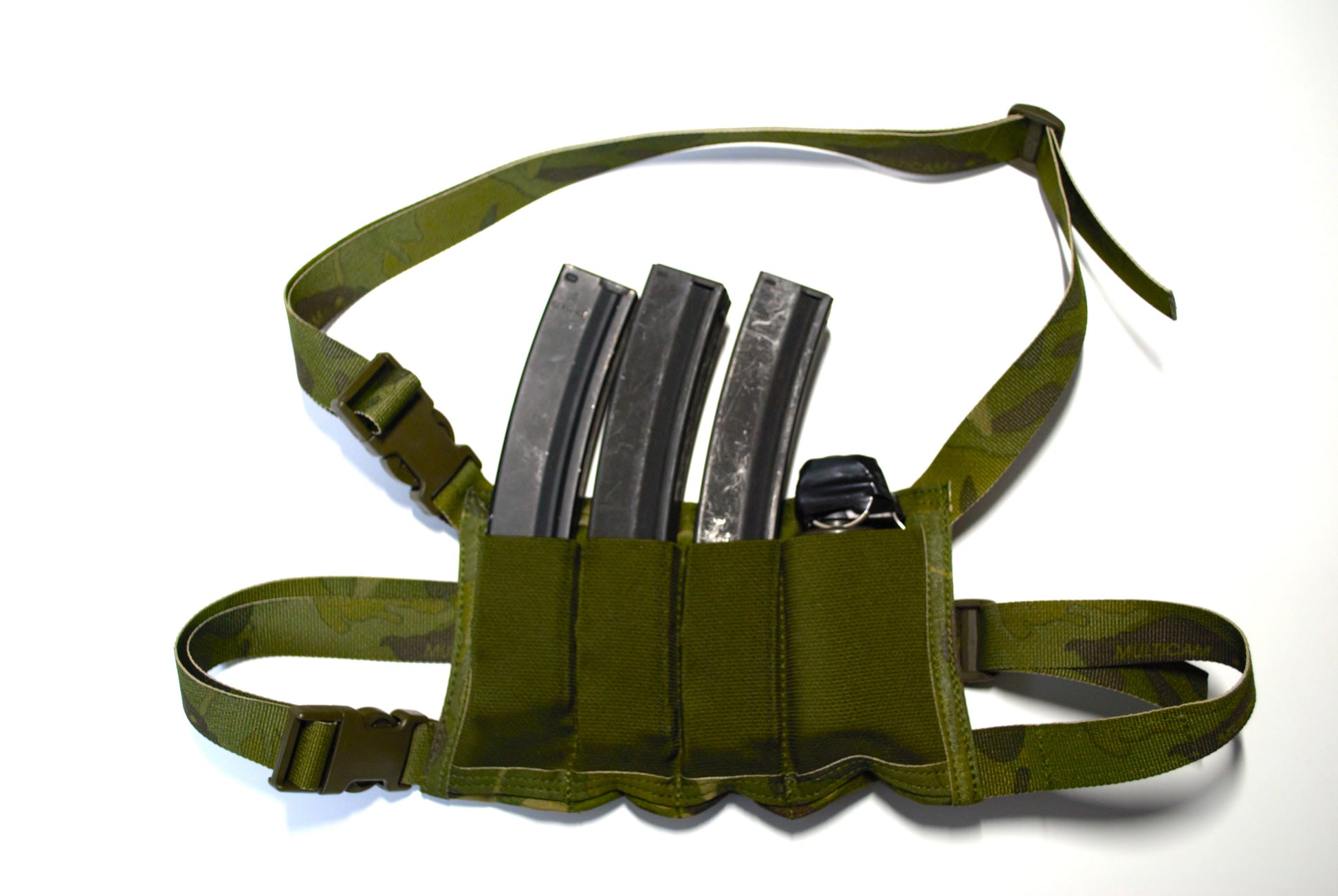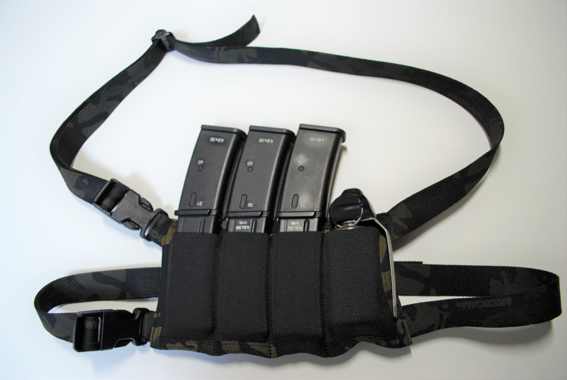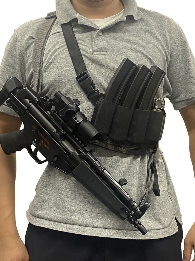 MP5やMP7などの9㎜SMGマガジンを3本携行でき、止血帯やフラッシュバンなどを入れる中型ポケットが一つついています。マガジンを増やすのもアリ、サプレッサーなどをいれておくのもアリでしょう。