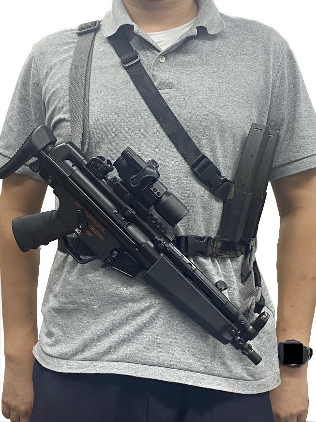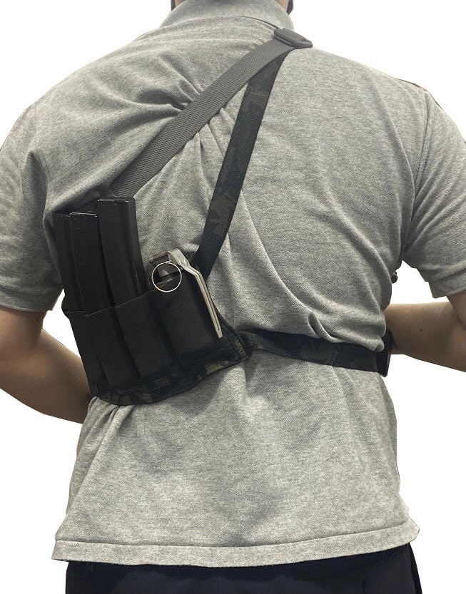このバンダリアは、スーツ着用下でも目立つことなく(Concealed Carry)、リュックサックに折り畳んでMP5やMP7などの軽量型SMGと一緒に(Compact Carry、Every day Carry)持ち運ぶことができ、迷うことなく簡単に着用できる(Equip Easy)というコンセプトで開発されました。