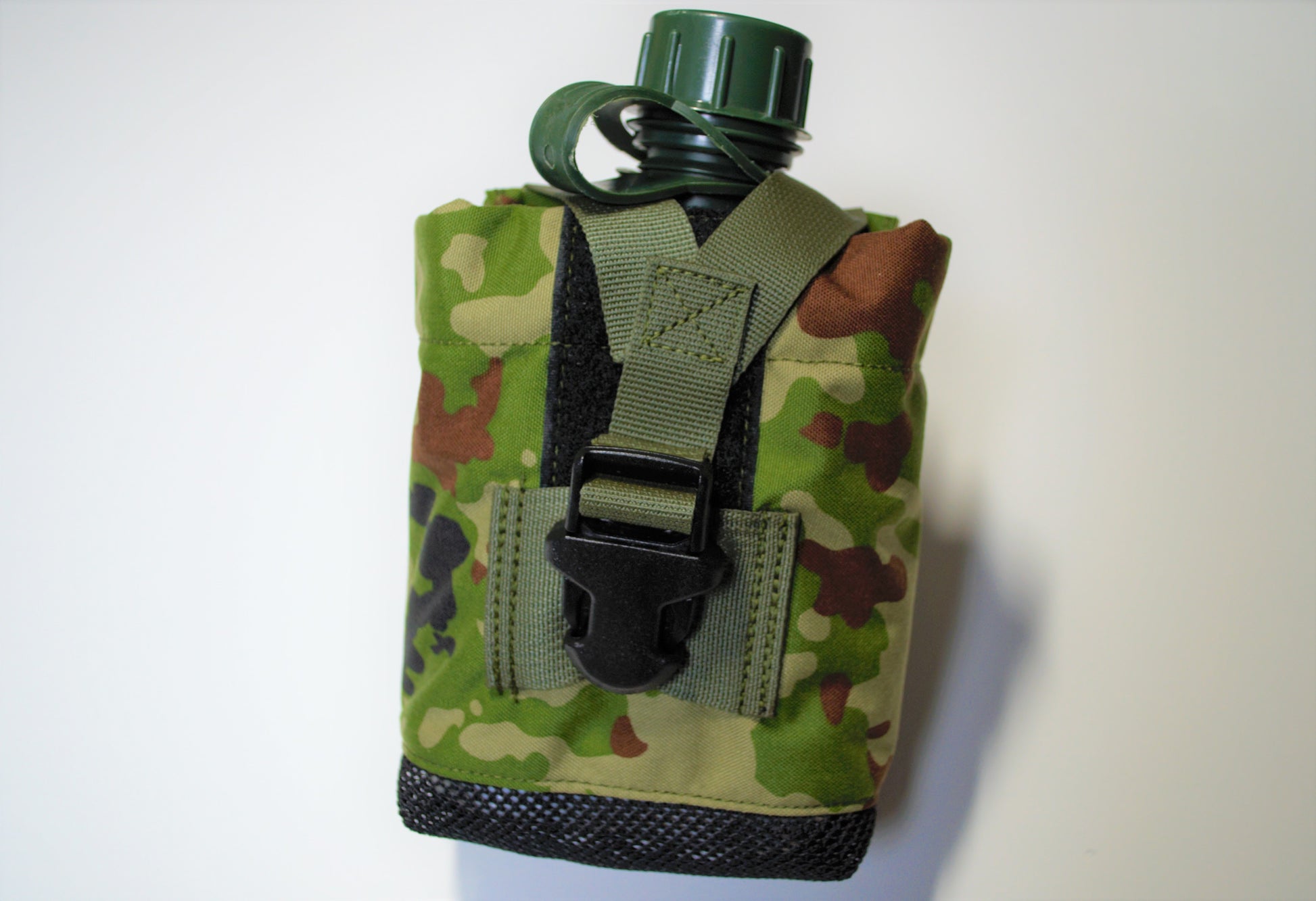 軍用の1QTサイズ水筒覆いとしての活躍を狙って開発したGPポーチです。フラップを折り畳み、バックルを外側に持ってくることで水筒覆いに変形します。