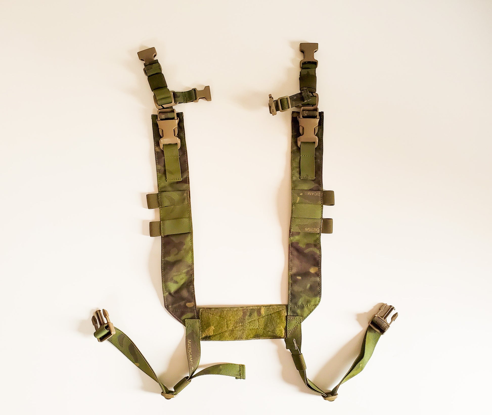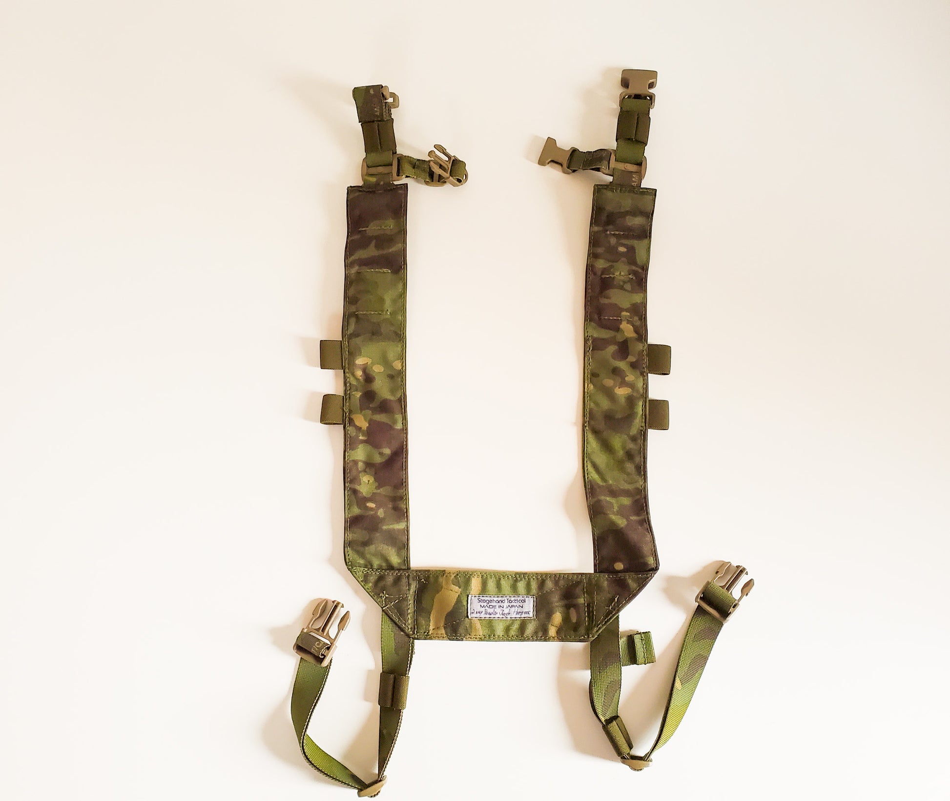 2PJHのハーネス部分、サスペンダーのみの商品です。バックルは前がメス、後ろがオスになっているため、当方の2PJHや8Mag Chest Rigだけでなく、社外品の幅広い製品にご利用いただけます。