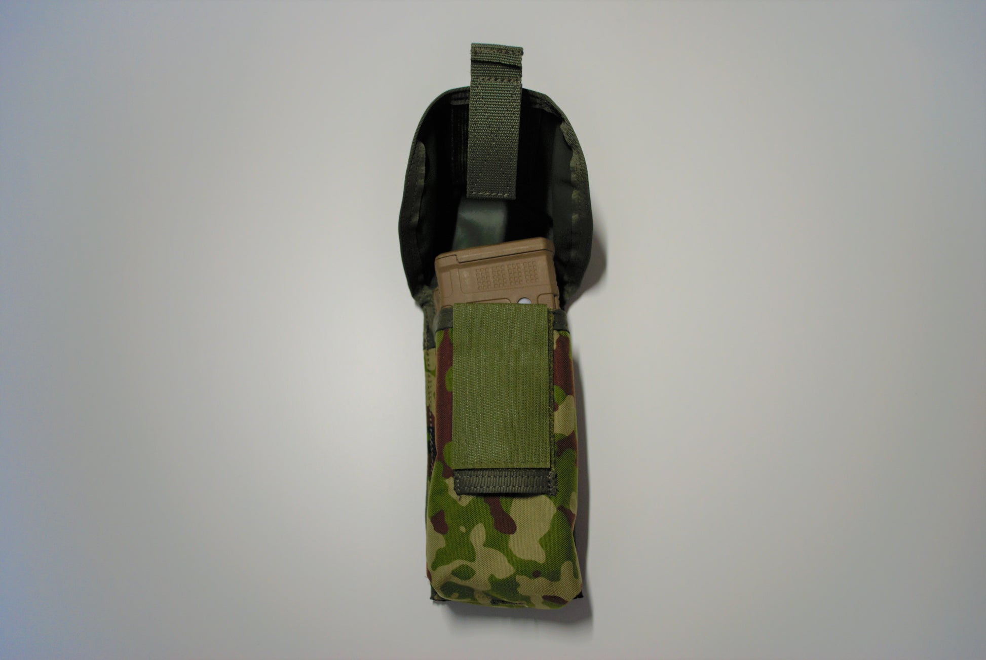当マガジンポーチは2本の5.56㎜マガジンを携行することが可能です。従来の10個だけ生産した1型では5.56㎜STANAG弾倉のみの対応となっておりましたが、2型では20式小銃用のPMAGにも対応したゆとりある設計となりました。
