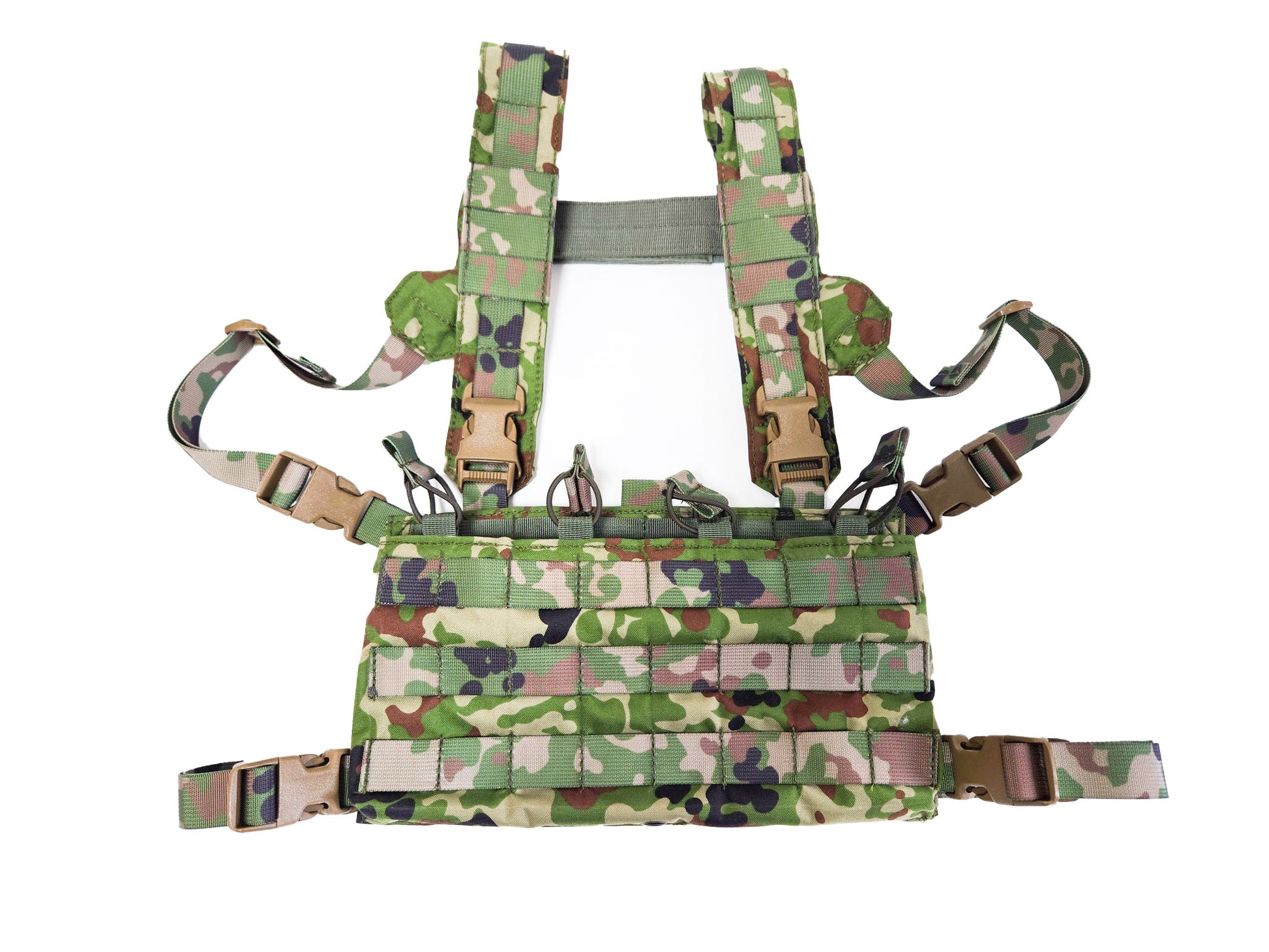 5.56㎜用STANAGマガジンやPMAGを4本運搬できるチェストリグパネルとウェストストラップと当方で作成している共用ハーネスのセットです。