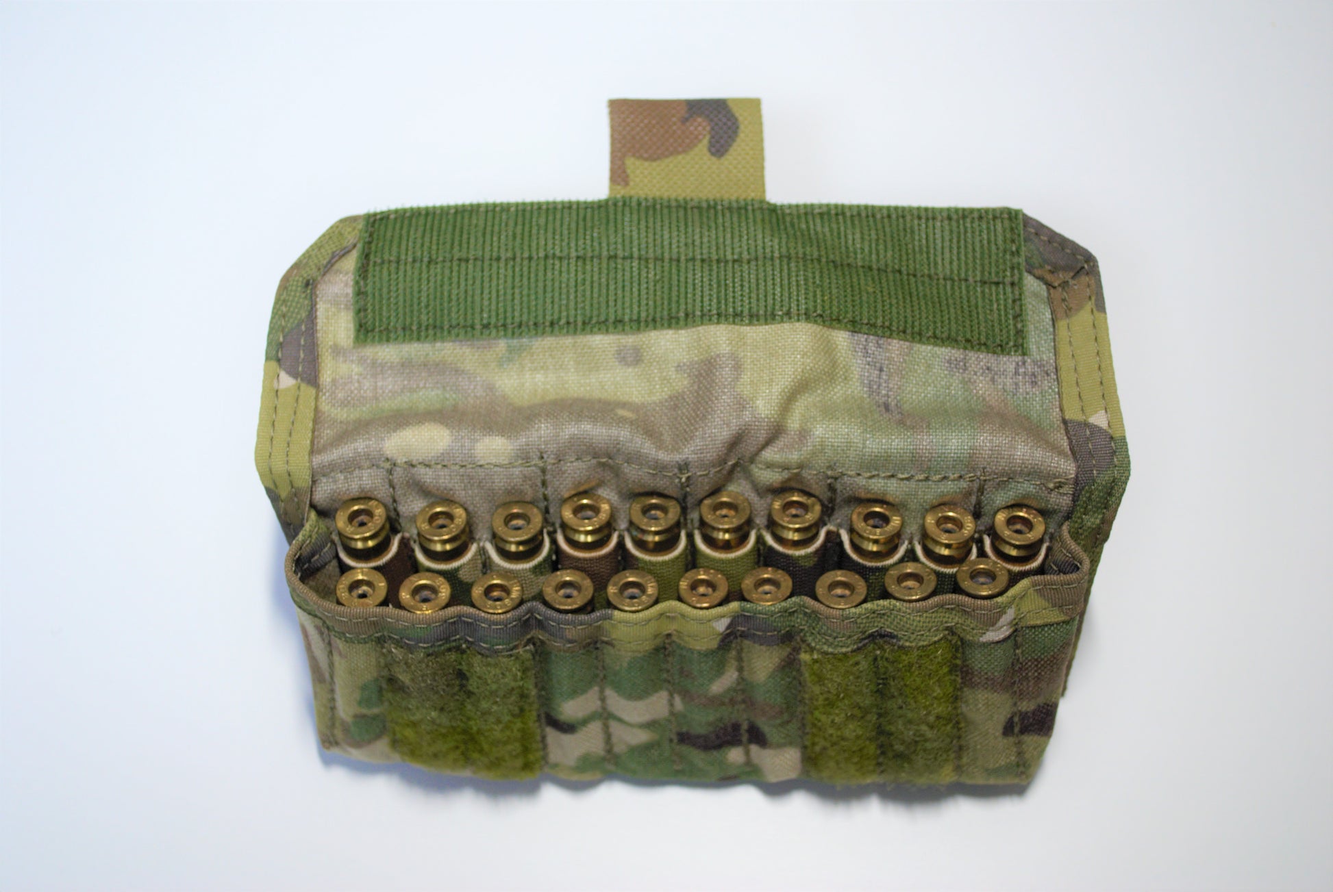 7.62㎜NATO弾を20発持ち運ぶためのポーチです。 対人狙撃銃装填用弾薬の携行はもちろんのこと、64式小銃携行時の予備などにご利用ください。
