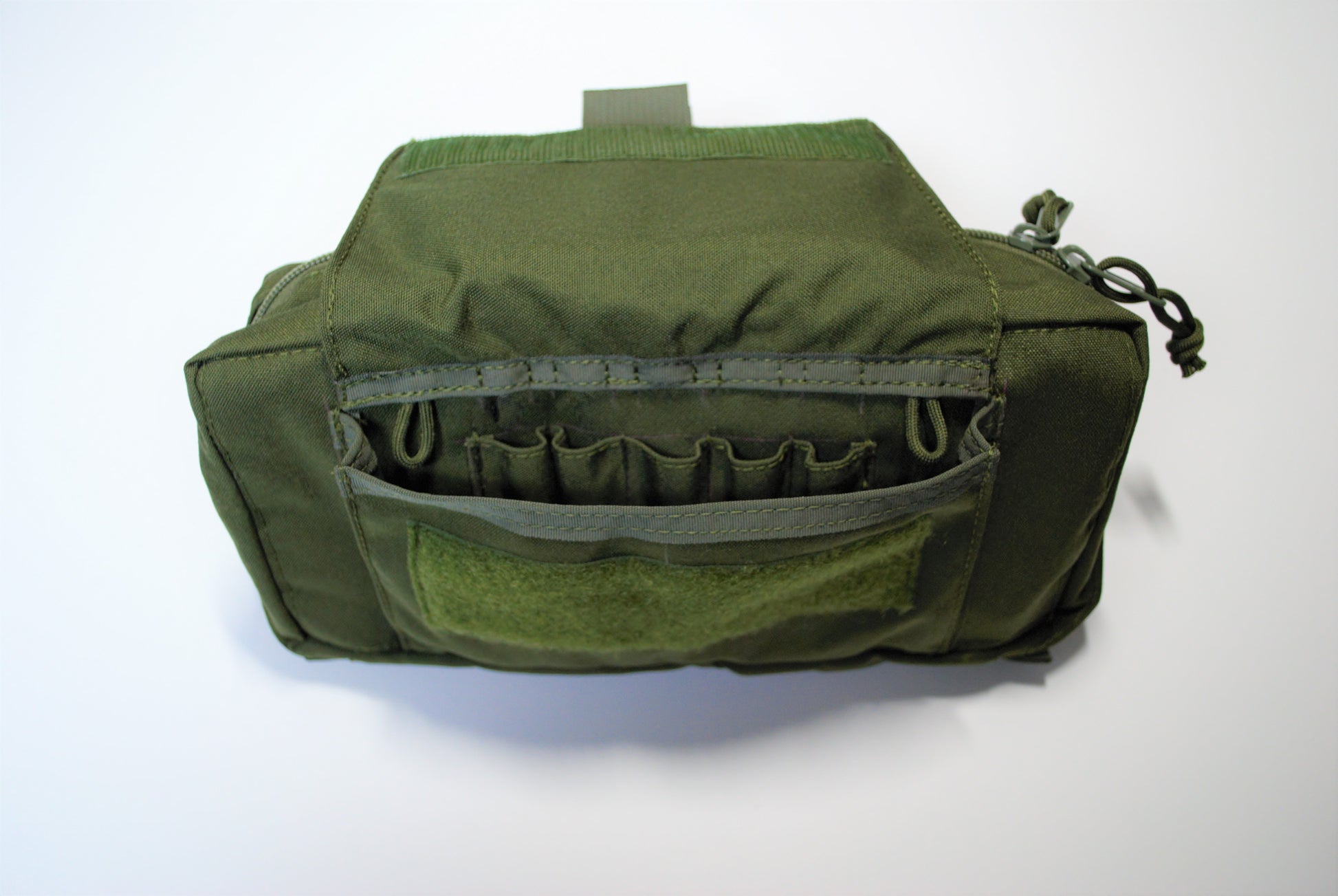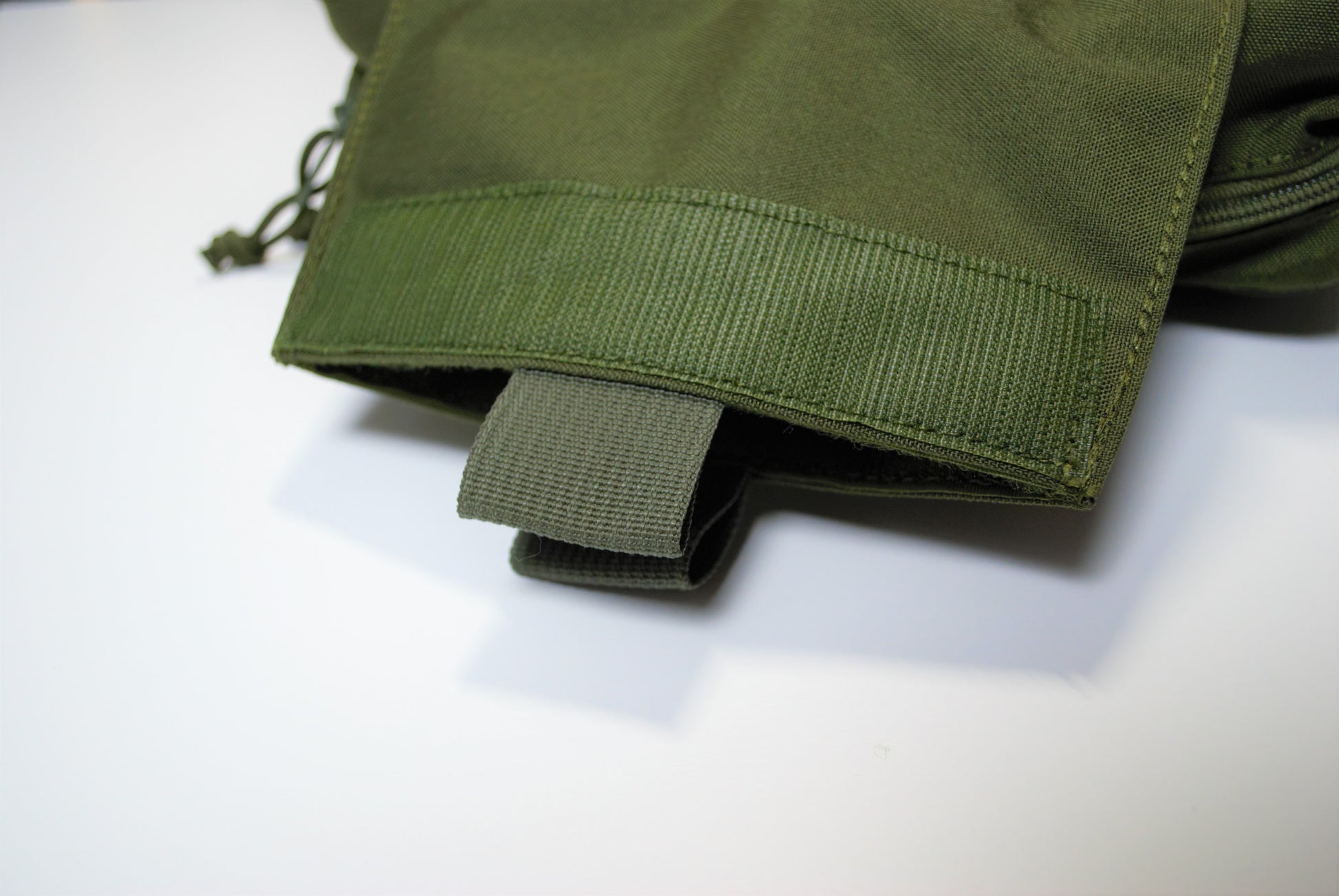 メインセクションには、大小ポケット、底部のエラスティックバンド、ベルクロメスの面を配置しました。ベルクロ面には、様々なベルクロアクセサリーが取り付けられます。