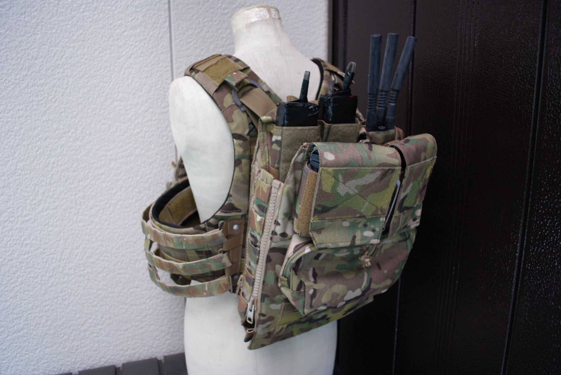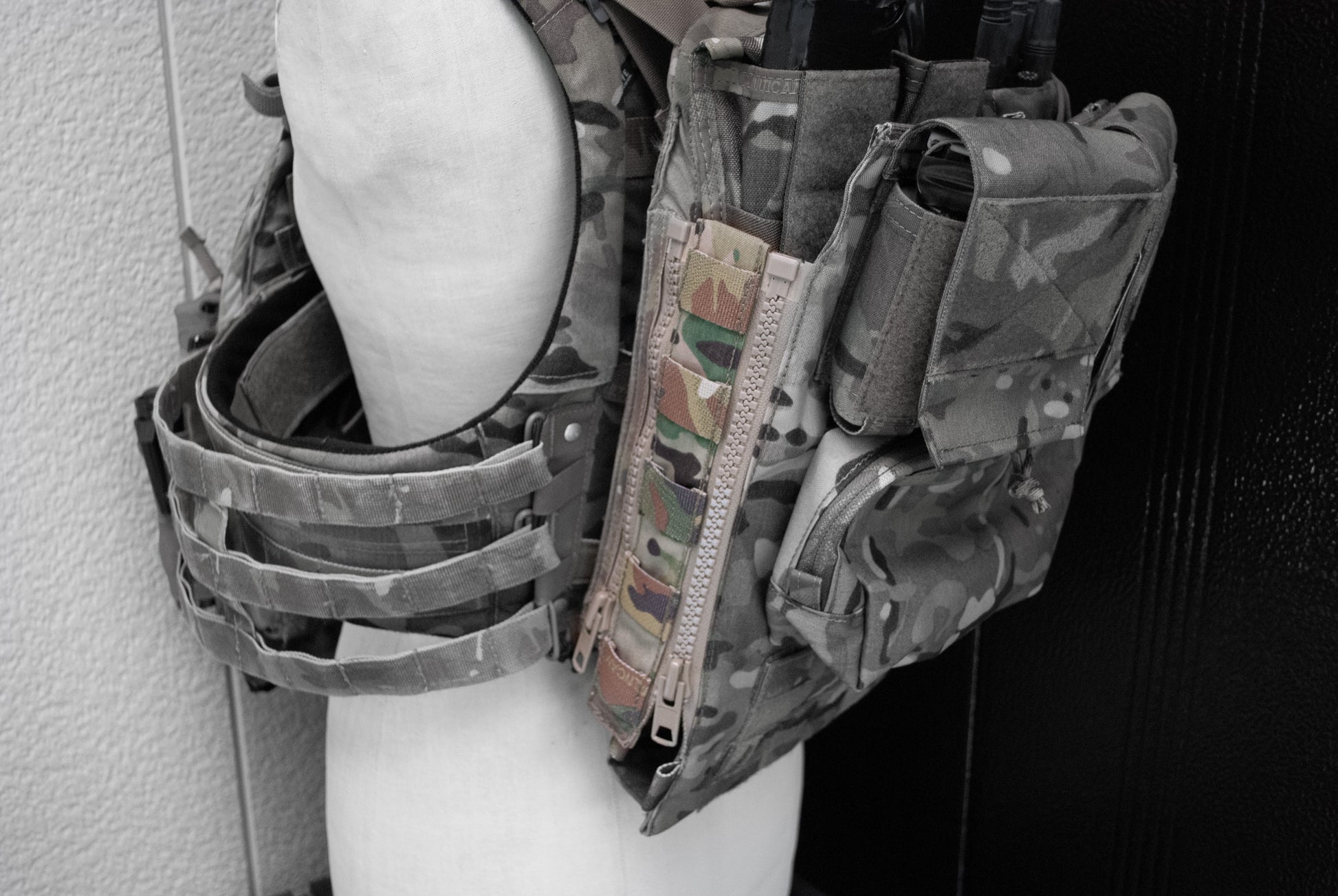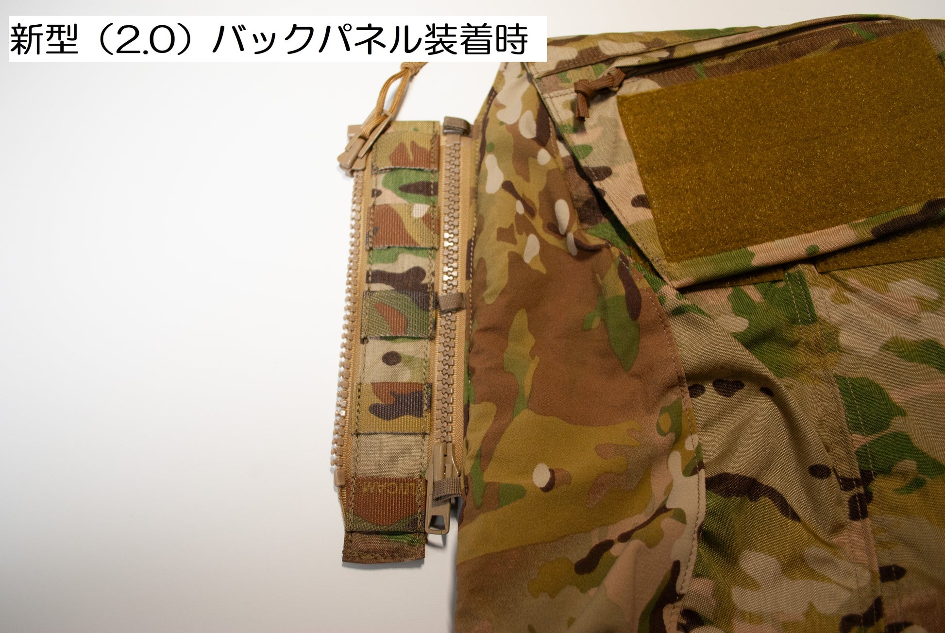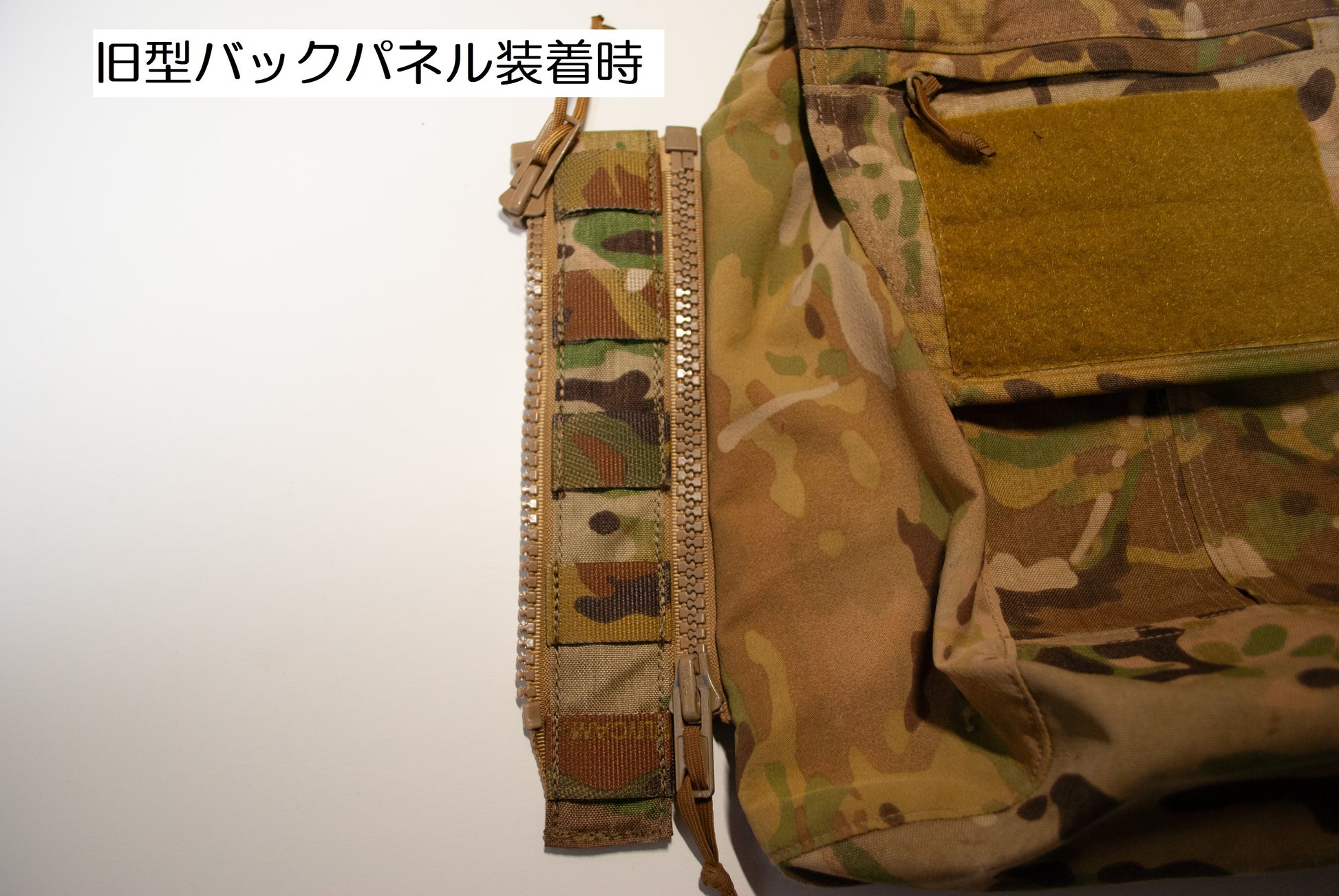 Crye Precision™製の旧型バックパネルと、新型(2.0)バックパネルで試験をしました。Crye Precision™からリリースされているバックパネルのファスナーは統制で21センチのYKKビスロンファスナーが使われており、国内のYKK提携専門店に持ち込んだ上で色合いとサイズ感の摺合せを行い、特注いたしました。