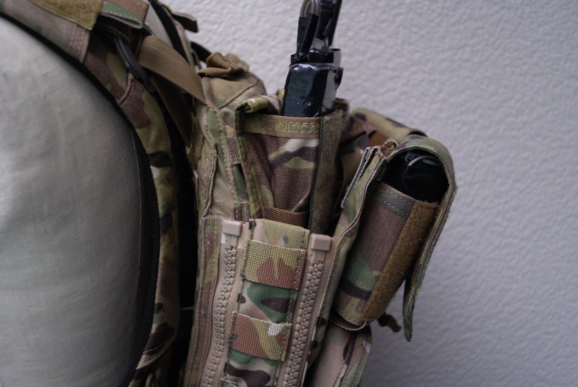 様々な任務に対応しているバックパネルは、その利点としては付け外しが楽で緊急的な切り替えができることでしょう。一方で、背中という広いMOLLE面積が一部犠牲になってしまうという欠点があります。