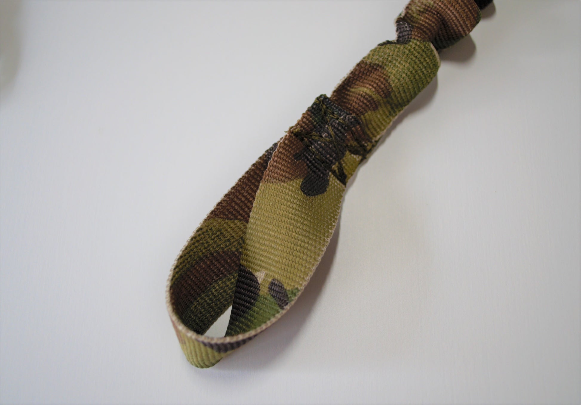 元々はStagehand Tactical代表が友人から依頼されて作成したもので、当人は陸軍特殊部隊グリーンベレーの再現に使用したとのこと。ローカルメイドと思われる製品で、当製品のようにHKフックなどの金具はなく、両側ともループになっていました。