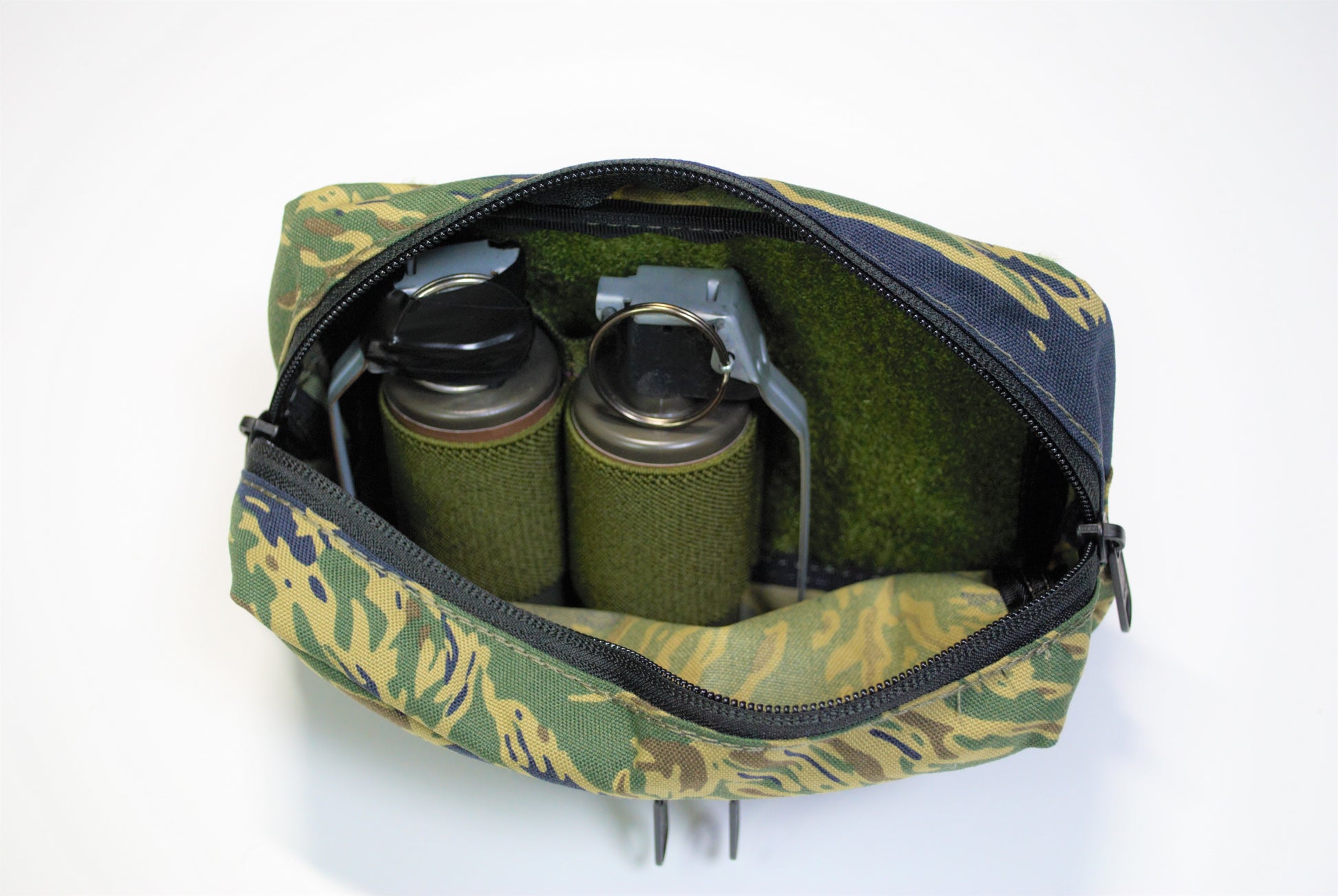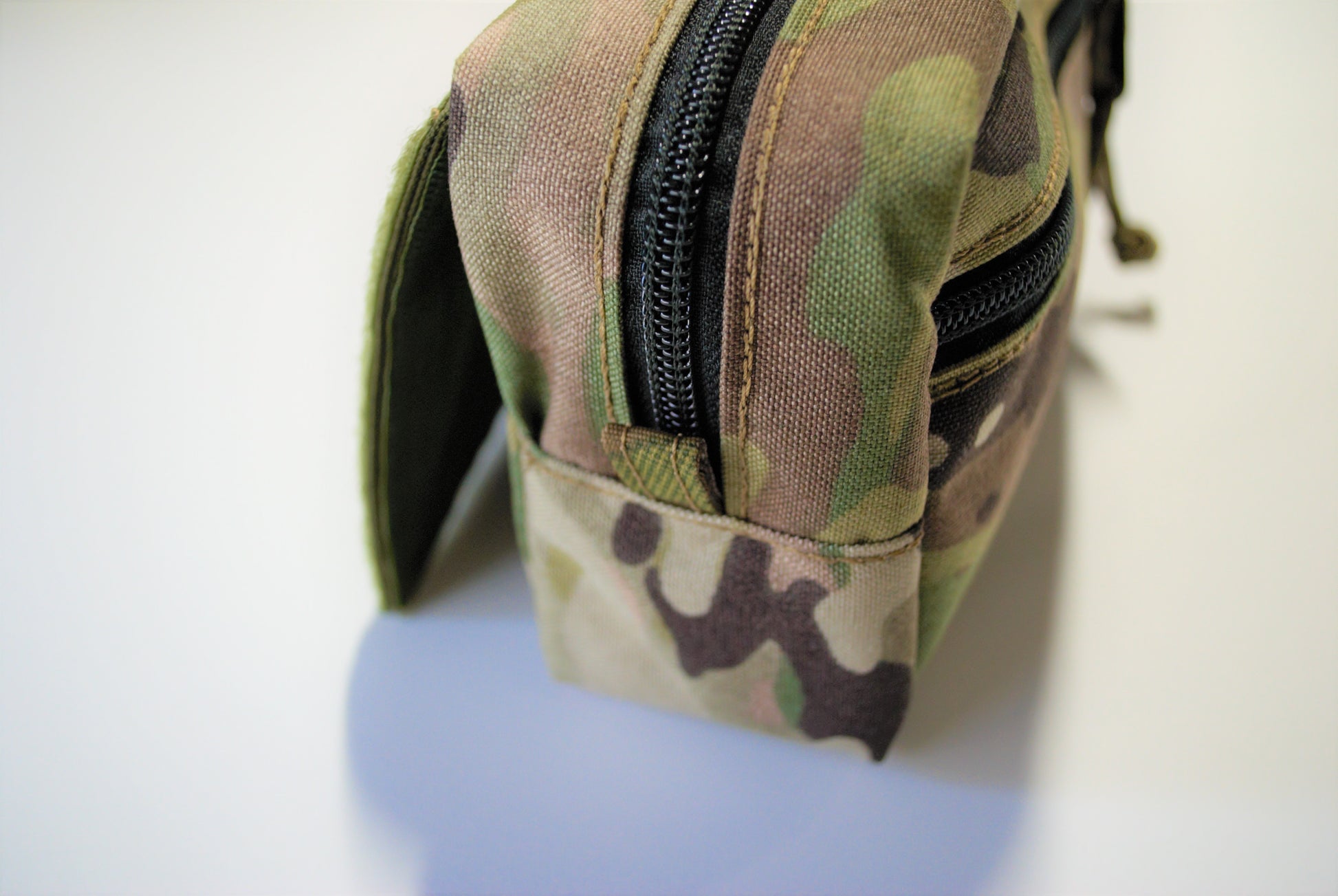 インナーアクセサリー(別売)を利用し、お客様が使いやすい形に組み替えることが可能なポーチです。ポーチ内側にはSaw on loop(ベルクロメス)が縫い付けられているので、アクセサリーの組み合わせによって無限の可能性を秘めたポーチに仕上げました。