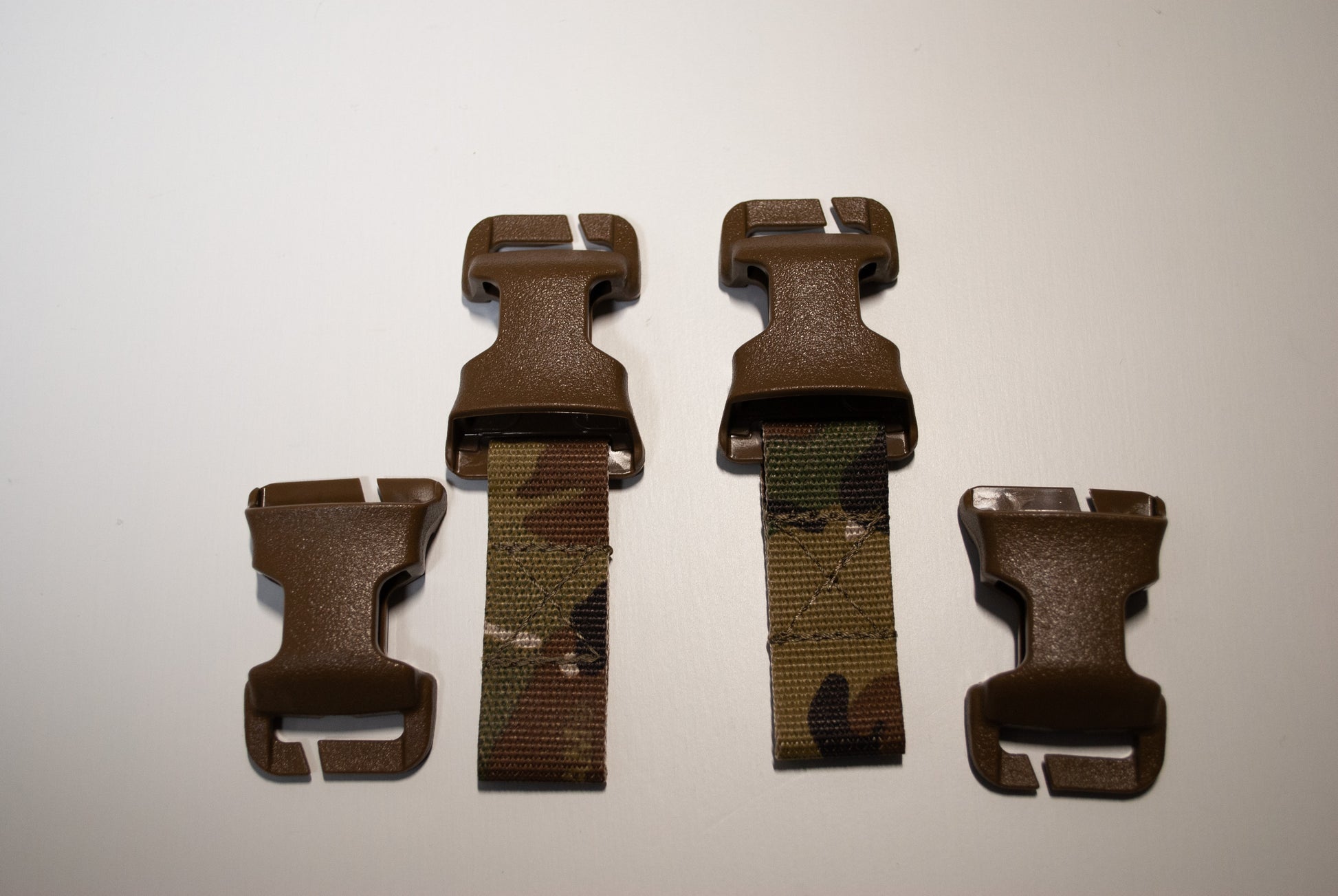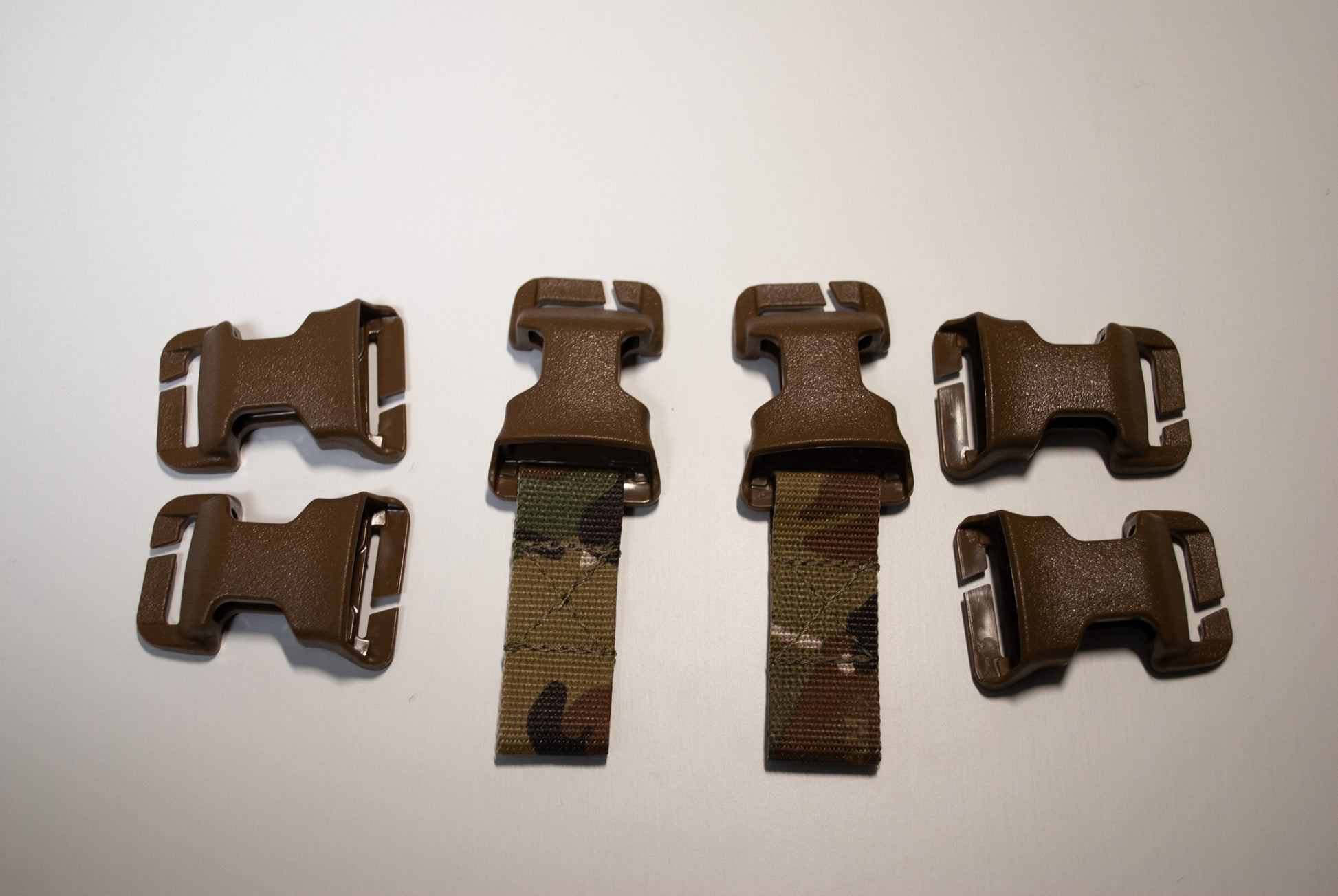 各社からリリースされているプラカードをMOLLE面のみの防弾チョッキ等に装着するためのバックルキットです。ITW製QASMバックルで構成されており、プラカードからITWのオスバックルが出ている場合、使用することができます。