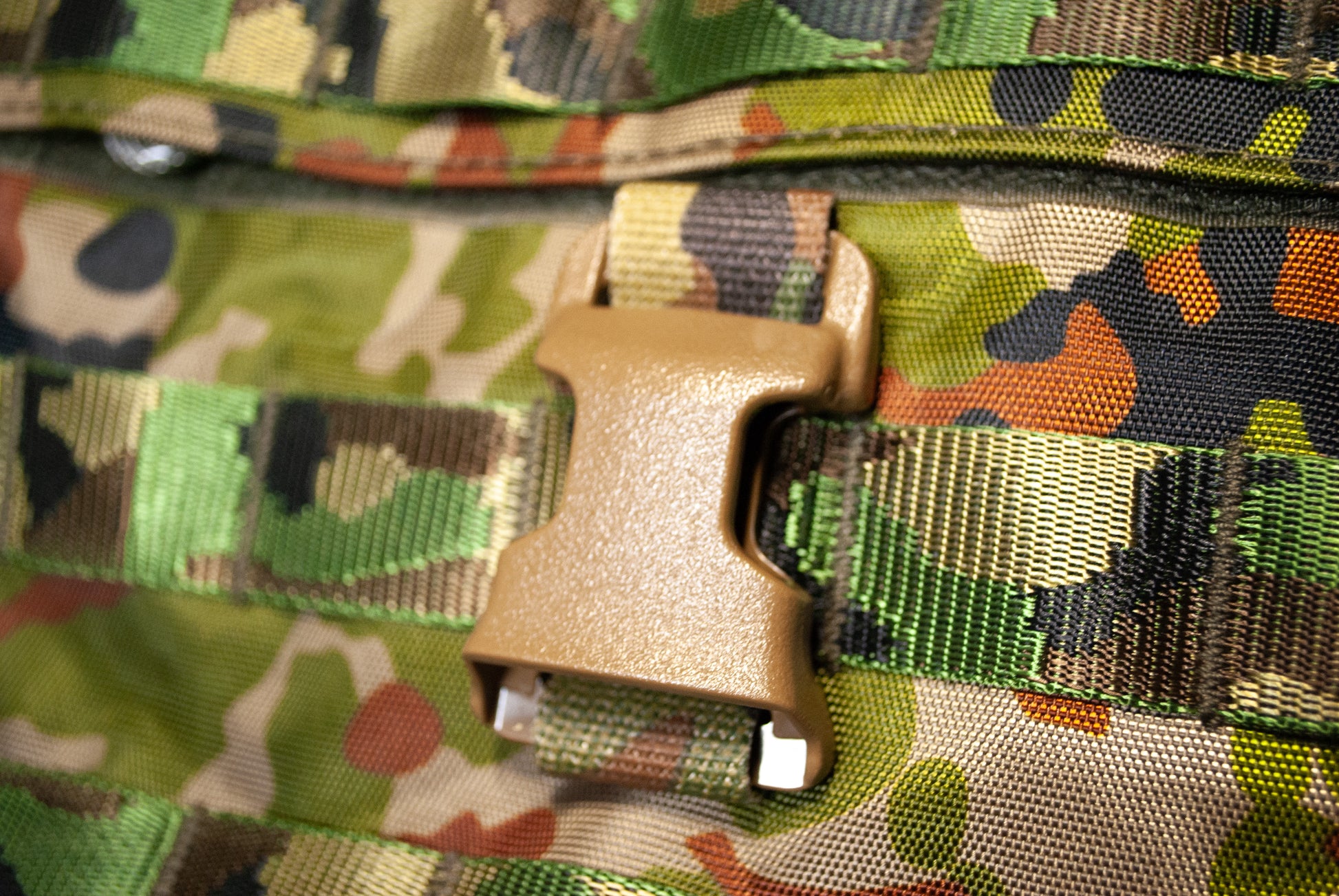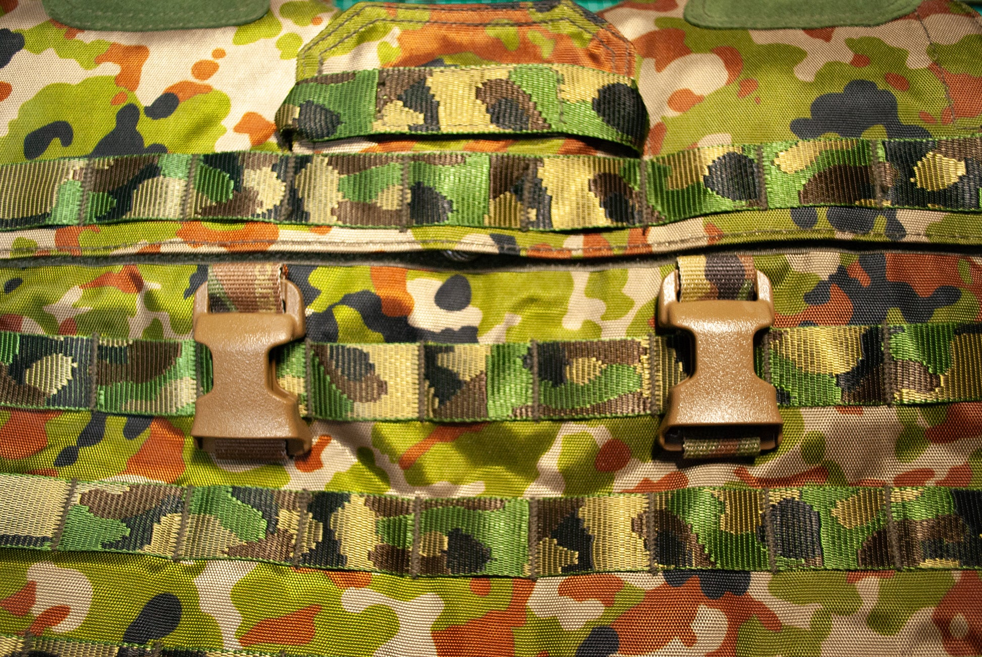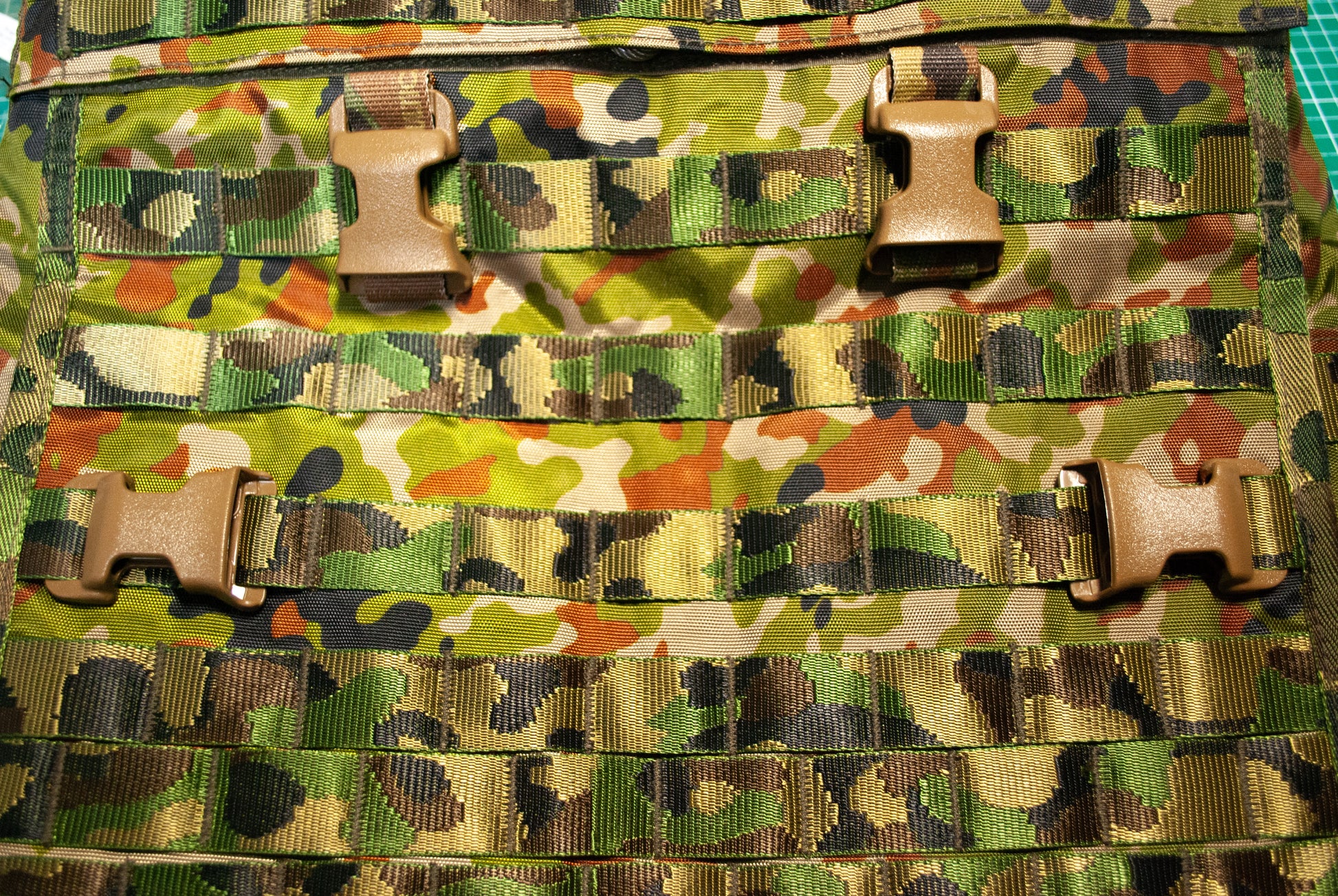 着装例を見て頂ければお分かりかと思いますが、MOLLEのコマがバックルの位置にあっているかを確認してからのご購入をお願い致します。