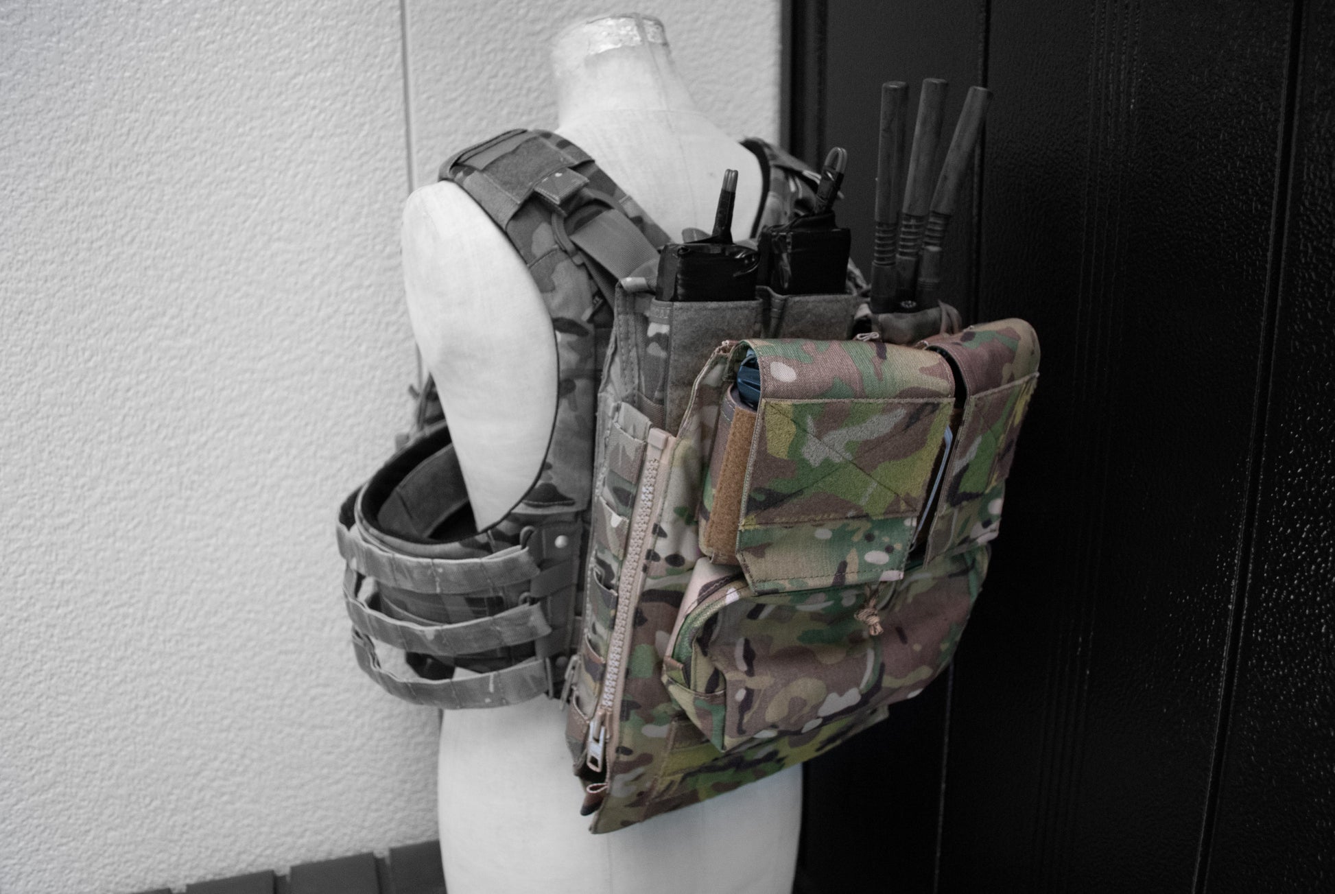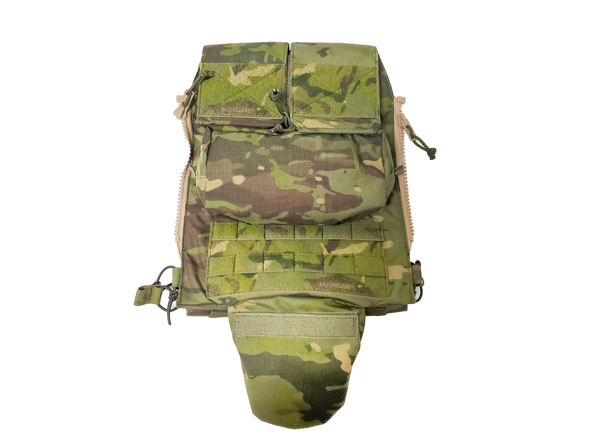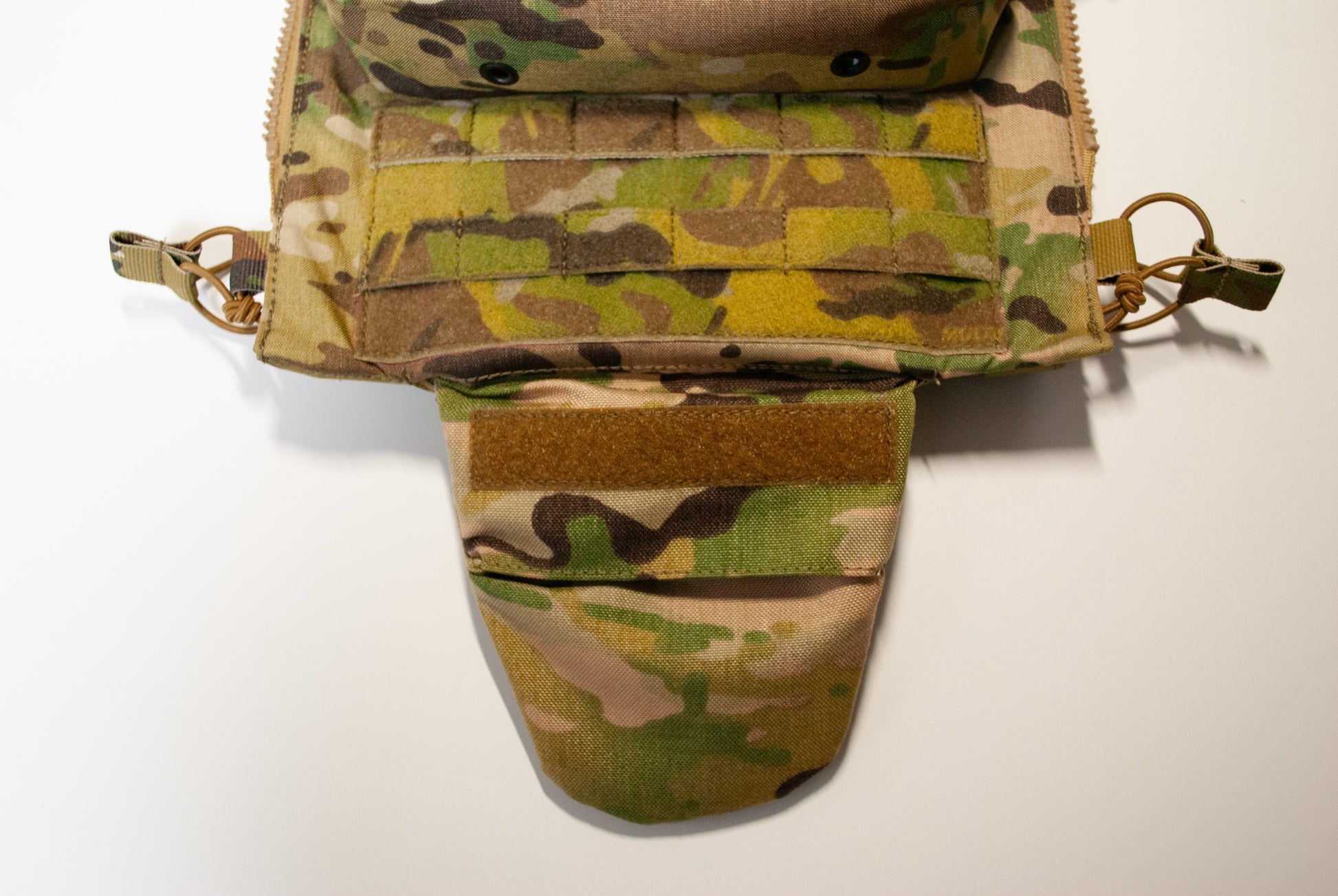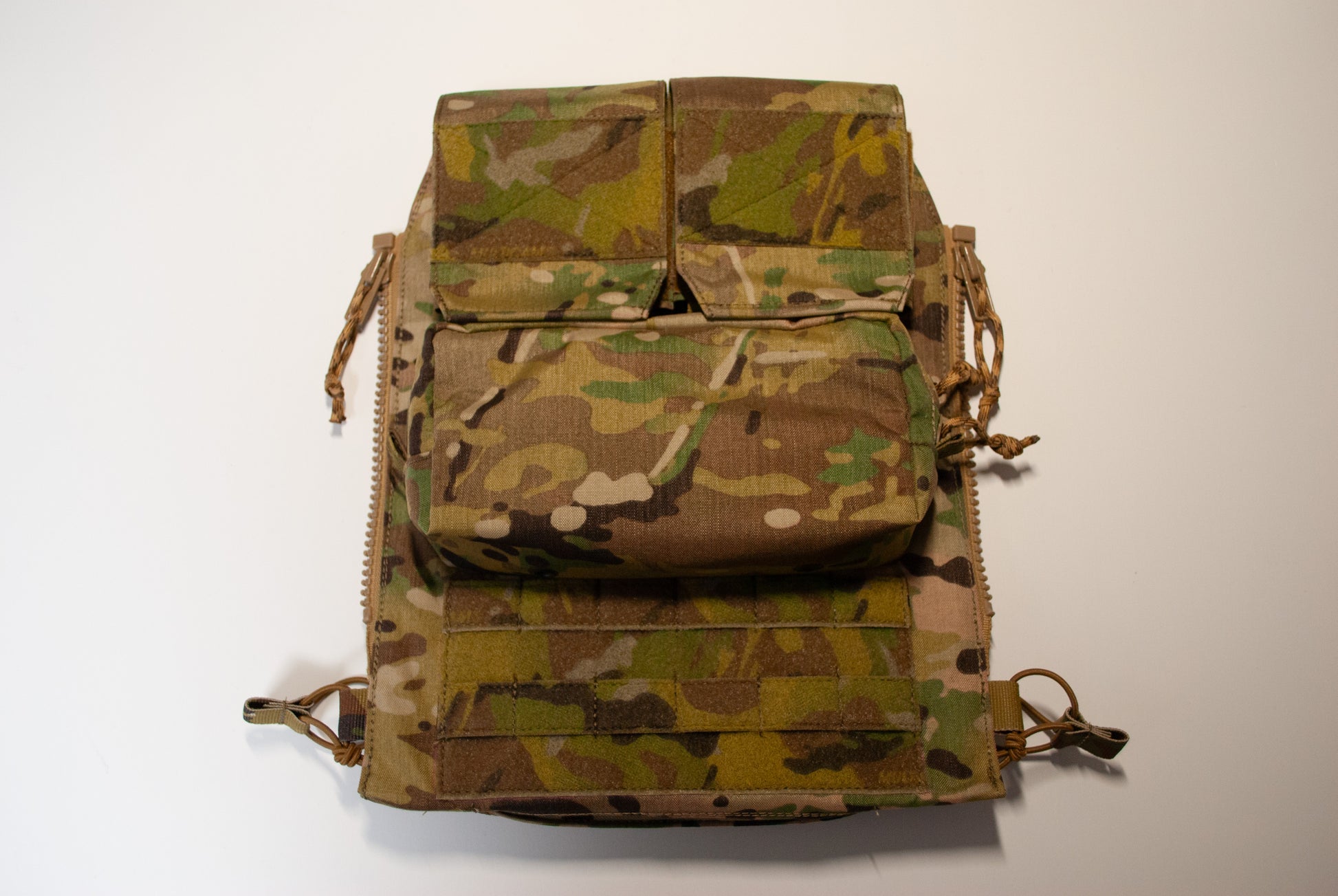 Crye Precision™製プレートキャリアに使用可能なバックパネルの、ポーチをひとつベルクロ付きMOLLE(2コマ×6コマ)に置き換えた物です。至極単純な理由ですが、StageHand Tactical代表が純正のバックパネルを見たときに「一番下のポーチ使わない」と感じたため、自由に他のポーチを付けられるようにしました。
