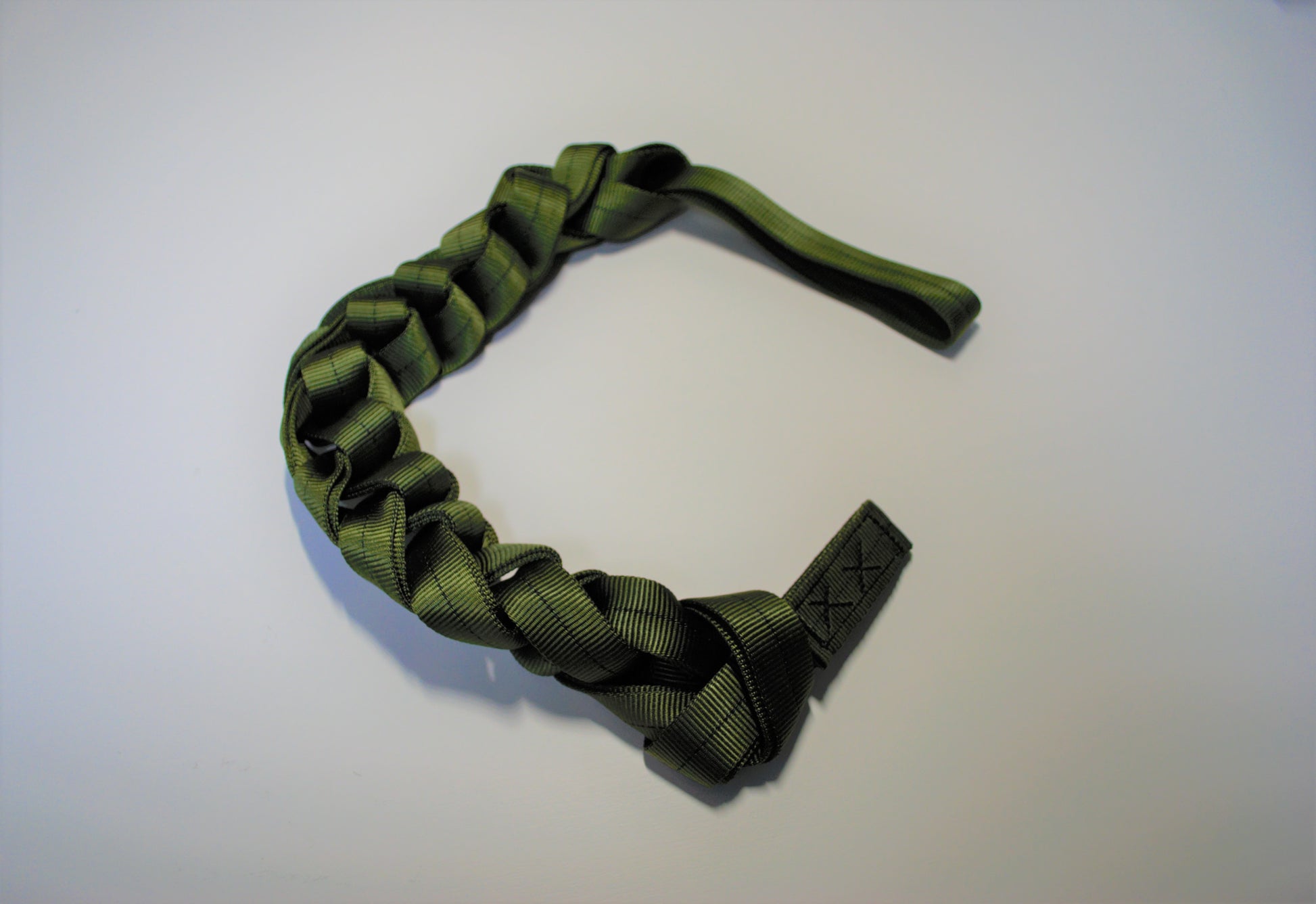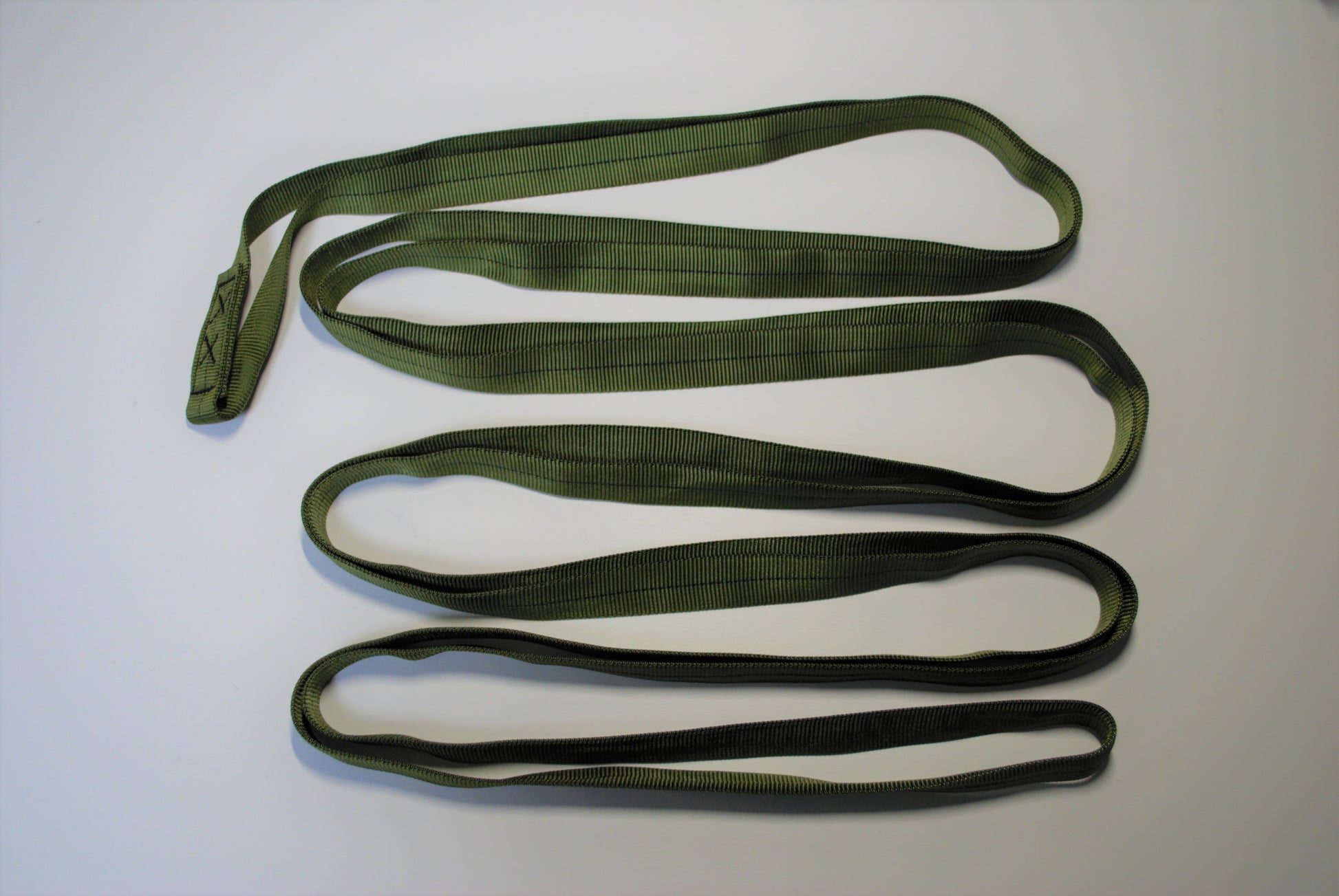 チューブラーウェビングで作成したテープの輪です。当製品は、自衛隊員の知人からのリクエストを元に製品化に至りました。